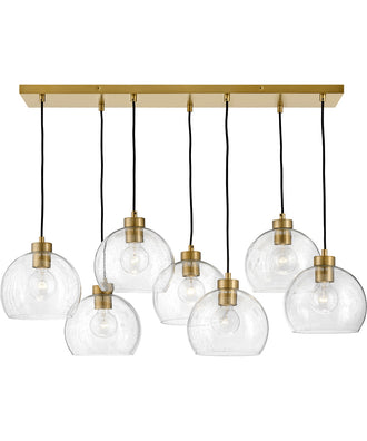 The Rumi 7-Light Medium Linear Pendant in Lacquered Brass is a modern masterpiece that will transform any room into a stylish haven. This stunning fixture combines contemporary design with art-forward elements, making it an eye-catching addition to your home decor. The pendant features clear seedy glass globes that exude a chic and sophisticated vibe, perfectly complemented by the flawless Lacquered Brass finish. Crafted with precision and attention to detail, this fixture is designed to captivate and elevate the ambiance of any space.