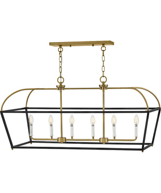 The Tate 6-Light Large Six Light Linear in Black is a stunning piece that effortlessly combines classic design with modern elegance. Its lantern-style profile, accentuated by graceful curves, adds a touch of sophistication to any room. The bold black finish contrasts beautifully with the lacquered brass accents, creating a timeless aesthetic that complements a variety of interior styles. Whether your décor leans towards traditional, contemporary, or transitional, this chandelier will seamlessly blend in and elevate the overall ambiance.