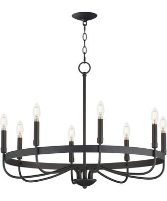 The Frankie 8-Light Chandelier in Black is the epitome of elegance and simplicity. Crafted with a sleek matte black finish, this chandelier offers a timeless and transitional appeal that seamlessly integrates with various interior aesthetics. Its minimalist design features a circular frame adorned with eight candle-like light fixtures, creating a balanced and harmonious look.
