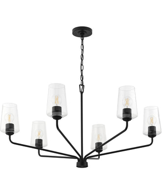This large 6-light chandelier is perfect for installation in foyers, living rooms, and dining rooms. The six perfectly proportioned clear glass shades deliver bright light to the surrounding space, creating a warm and welcoming atmosphere. The chandelier measures 40 inches in diameter and 21 inches in height, providing ample illumination without overwhelming your space. The fixture uses six 60-Watt max medium base bulbs, or LED equivalent, which are sold separately. It is also dimmable when used in conjunction with dimmable bulbs, allowing you to create the perfect ambiance for any occasion.