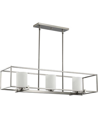 The Chadwick 3-Light Etched Opal Glass Modern Chandelier Light in Brushed Nickel is a stunning addition to any modern home. Featuring a sleek, geometric design, this chandelier combines simple forms with clean, crisp lines. The rectangular frame is coated in a classic brushed nickel finish that provides a sophisticated contrast to the soft, opal glass shades. This masterful design creates a visually calming effect, making it an ideal choice for spaces in need of a subtle, feminine touch.