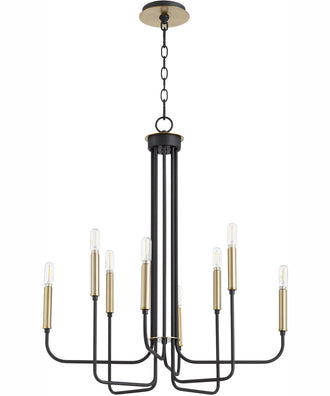 The Hope 8-light Chandelier in Textured Black with Aged Brass finish is a striking addition to any home or office. This chandelier, part of the esteemed Hope collection by Quorum, boasts a sophisticated soft contemporary style that effortlessly blends modern aesthetics with timeless elegance. The chandelier features a sleek, minimalist design with clean lines and an open frame, making it a versatile piece that complements various interior themes.