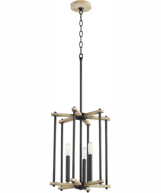 Quorum Silva 3-light Entry Foyer Hall Chandelier Textured Black w/ Weathered Oak Finish