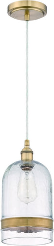 A classic bell jar of clear glass edged with a band of Antique Copper, Craftmade’s 1 Light Mini Pendant glimmers with sophistication and style.