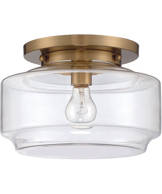 The Peri Collection by Craftmade, inspired by classic schoolhouse lights, features a wide clear glass globe in a familiar yet updated shape. Finished in your choice of brushed polished nickel, flat black or satin brass, these flushmounts are available in 12" and 14" diameter and each uses a single 60W medium base bulb.