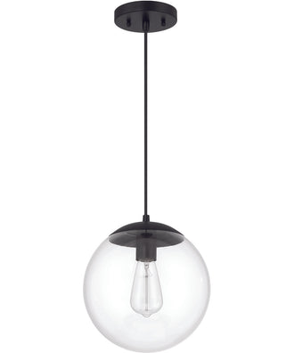 Enhance your home with the timeless style of the Gaze 1-Light Lighting Flat Black Pendant. This exquisite lighting fixture is part of the Gaze collection by Craftmade, known for its sophisticated design and impeccable craftsmanship. Featuring a stunning clear glass globe, this pendant light offers a perfect blend of modern elegance and classic charm, making it an ideal addition to any room in your home.