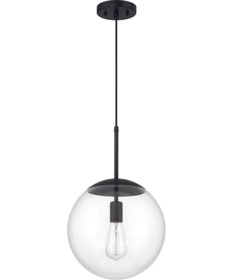 The Gaze pendant light features a sleek, flat black finish that exudes contemporary style. Its clear glass globe shade, available in 10", 12", and 14" sizes, showcases the bulb within, creating a striking visual effect. The adjustable height cord, complemented by an optional 6" globe connection rod, not only adds a decorative element but also ensures stability. This attention to detail in design and craftsmanship makes the Gaze pendant a standout piece in any room.