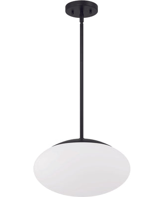 The Gaze 1-Light pendant boasts a refined design that exudes elegance and sophistication. Its white frosted glass shade offers a soft, diffused glow, creating a warm and inviting ambiance in any room. The smooth, oval-shaped globe measures 14 inches in width and 8 inches in height, providing ample illumination while maintaining a sleek and unobtrusive profile. The flat black finish of the downrod and canopy adds a touch of modernity and complements a variety of color schemes and decor styles.