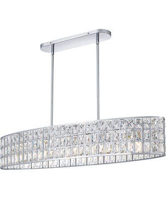 Introducing the Gibson Medium 5-light Island Light in Polished Chrome, a masterpiece that adds instant mystique and luxury to any space. This exquisite lighting fixture features clear beveled crystal shades that create a dazzling play of shadow and light, elevating the ambiance of your home. The polished chrome finish enhances its modern appeal, making it a perfect addition to contemporary and glam-styled interiors.