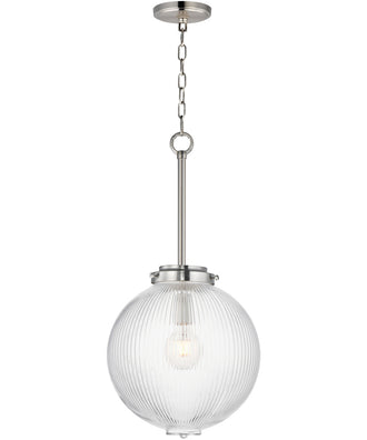 This pendant light boasts a beautiful satin nickel finish that exudes a refined, polished aesthetic. The clear ribbed glass shade allows the light to diffuse softly, creating a warm and inviting ambiance. The combination of the satin nickel hardware and the clear glass shade ensures that this fixture will seamlessly integrate into any color scheme or decor style, from modern and minimalist to vintage and industrial.