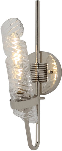 The highlight of this collection is the hand formed Clear spiral glass shades which are nested in a unique frame of Polished Nickel. Inspired by the craftsmen of Italy, these fixtures will become tomorrow's heirlooms.
