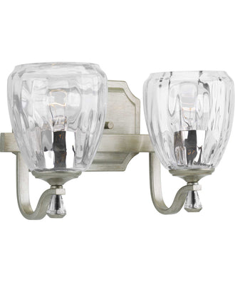 Progress lighting Anjoux 2-Light Clear Water Glass Luxe Bath Vanity Light Silver Ridge