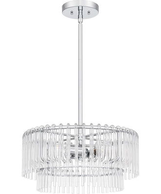 The Tayshia Large 3-light Pendant in Polished Chrome is a stunning addition to any home, embodying elegance and modern sophistication. Part of the renowned Platinum by Quoizel collection, this pendant light is designed to be a true statement piece. The clear acrylic shade features a cascading layered design that creates a fun and airy feel, making it an eye-catching focal point in any room. The sleek polished chrome finish enhances its contemporary appeal, making it perfect for glam, modern, or contemporary spaces.