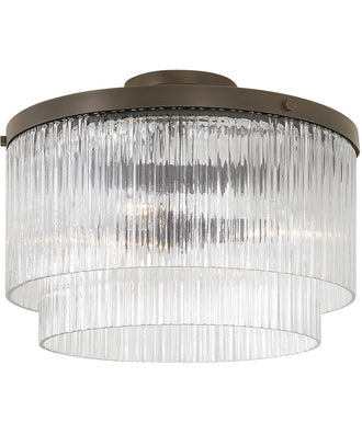 Invite stunning illumination to any space with the Vaughn 3-Light Pendant in Oil Rubbed Bronze. This versatile fixture offers the flexibility of being hung as a pendant or mounted semi-flush, making it a perfect addition to various room settings. The elegant design features a tiered cylindrical silhouette adorned with beveled fluted glass, creating a captivating texture that enhances the overall aesthetic of your space.