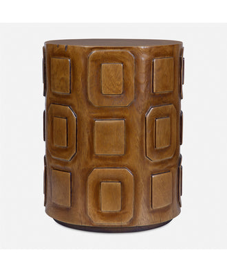 • Features: Crafted from suar wood, this accent table features a striking textured, geometric design that accentuates the wood's rich grain, adding depth and visual interest. solid wood will continue to move with temperature and humidity changes, which can result in cracks and uneven surfaces, adding to its authenticity and character.
