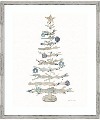 ART DESCRIPTION: This vibrant watercolor piece captures the essence of a coastal holiday with its intricate decorations adorning the branches of a tropical tree. From starfish to drift ornaments, the nautical theme is brought to life with a string of lights and a unique topper, creating a decorative masterpiece that exudes holiday cheer. This Amanti Art framed art print was created by Kathleen Parr McKenna and printed by Amanti Art in Madison WI. The print is giclee printed using fade-resistant inks for picture-perfect detail and incredible depth of color and finished with a 100% real wood frame. Individually made using traditional custom framing techniques, it has the quality you would expect from your local frame shop. Because of our attention to detail and focus on artistry, architects, interior designers, and homeowners alike choose this framed art print to create beautiful living spaces.