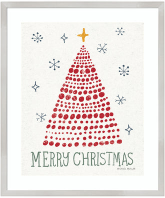 • CUSTOM ARTWORK DETAILS: Merry Christmas Crop by Michael Mullan. ART DESCRIPTION: This illustrative holiday artwork features a vibrant Christmas tree adorned with festive decorations and surrounded by delicate snowflakes and stars. The merry lettering adds a playful and joyful touch to the overall composition, making it a perfect addition to any holiday decor. ARTIST BIO: Michael Mullan is an illustrator, designer, and hand letterer. His work has appeared in editorials and ad campaigns, as well as licensed products for the home. His illustrations are inspired by folk art, 1960s illustration, and Pop Art.
