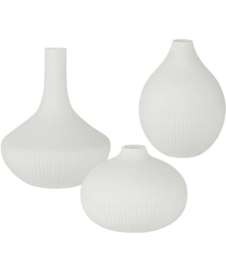 • Features: The apothecary vases showcase three varying curved silhouettes accented by carved details in a satin white finish. sizes: s-8x6x8, m-8x11x8, l-10x12x10