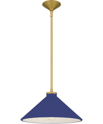With a nod to mid-century charm, the Bradbury pendant light brings warmth and personality to any space. Its brushed gold accents gleam softly, setting off the crisp, conical shade available in a spectrum of colors—from serene light blue and fresh light green to rich navy, deep matte black, and sophisticated dark green. Each shade is painted white inside to reflect a clean, luminous glow, creating light that feels as inviting as it looks. Whether hanging solo or in a playful cluster, Bradbury is a celebration of color, craftsmanship, and timeless style.
