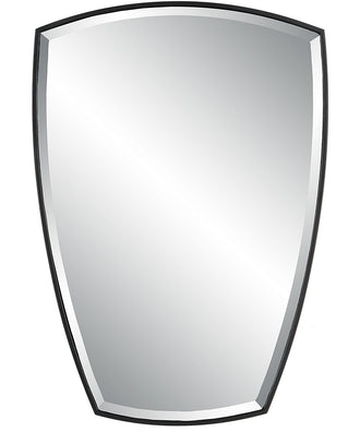 • Features: The crest mirror features a softly curved iron frame finished in a sleek satin black, displaying a 1" bevel. may be hung two ways.