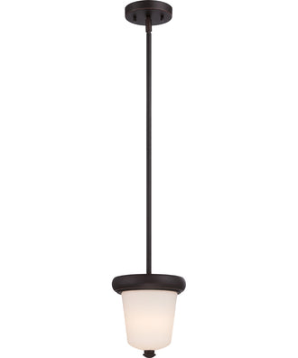 The 7" W Dylan 1-Light LED Pendant in Mahogany Bronze by Nuvo Lighting is a stunning addition to any home or office space. This mini pendant light features an elegantly simple yet sophisticated design that effortlessly complements a variety of interior styles, from contemporary to traditional. The etched opal glass shade provides a soft, diffused light that creates a warm and inviting atmosphere. The rich mahogany bronze finish adds a touch of luxury and timeless appeal, making this pendant light a perfect choice for enhancing the aesthetic of your living spaces.