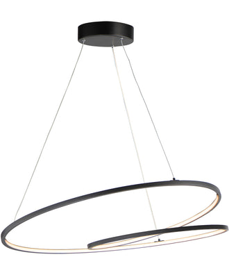 This playful design of continuous channel finished in Matte Silver, spiral from the canopy to create unique lighting sculptures. LED mounted inside the channel provides ample illumination with an indirect effect.