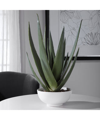 A Contemporary Aloe Vera Statement Piece, Accented With Natural Stones Set Into A Glossy White Textured Bowl.Uttermost's Botanicals Combine Premium Quality Materials With Unique High-style Design.With The Advanced Product Engineering And Packaging Reinforcement, Uttermost Maintains Some Of The Lowest Damage Rates In The Industry. Each Product Is Designed, Manufactured And Packaged With Shipping In Mind.