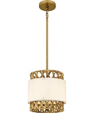 Part of the Quoizel Naturals series, Kate makes a distinctive statement with its combination of rattan and fabric shades. Finished in brushed gold, Kate embodies coastal style with its natural and elegant design elements. Available as a pendant, mini pendant, or ceiling fan light, the Kate collection offers versatile options to enhance a variety of spaces. Whether you’re looking to add a touch of coastal charm to your dining area, kitchen, or living room, the Kate provides both style and functionality, seamlessly blending with your interior decor.