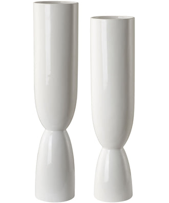 This set of two ceramic vases feature a white fired glaze over their unique shape. sizes: s-5x18x5, l-5x20x5