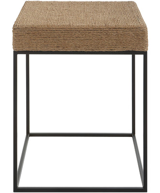 Showcasing sleek lines with a rustic twist, the laramie accent table displays natural braided rope atop a streamlined matte black iron base.