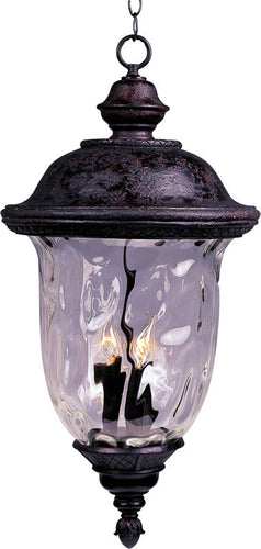 The 14"W Carriage House Vivex 3-Light Outdoor Hanging Lantern in Oriental Bronze is a stunning addition to any outdoor space. Its elegant design features a beautifully crafted lantern with a rich Oriental Bronze finish that exudes timeless charm and sophistication. The intricate detailing on the cap and base, combined with the unique water glass, creates a captivating visual effect that enhances the overall aesthetic of your exterior décor.