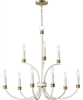 Transform your space with the Charlton 9-Light Chandelier in Weathered White/Gold Leaf. Its elegant design, high-quality craftsmanship, and versatile functionality make it a perfect choice for any room. Don't miss out on this exquisite lighting fixture. Order now and elevate your home's decor with timeless elegance.