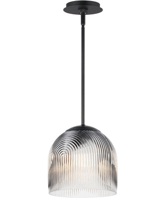 Featuring a concentric, semicircular ribbed glass pattern, this collection offers a blend of familiar design with contemporary flair. The deeply textured glass refracts light beautifully, diffusing glare while delivering ample functional illumination. Metal accents in a Matte Black finish enhance the modern aesthetic. Available in oversized pendant and flush mount configurations, the collection is ideal for larger spaces, combining bold design with practicality.