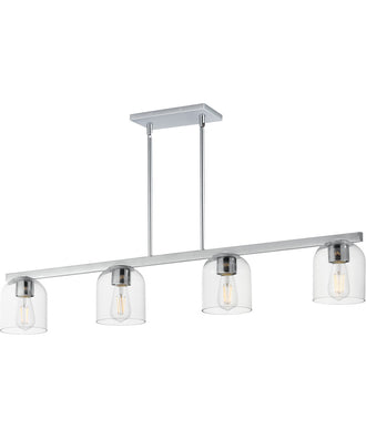 The Scoop 4-Light Linear Pendant in Polished Chrome is a stunning addition to any contemporary space. This fixture features a sleek, polished chrome finish that exudes sophistication and modernity. The design is characterized by its clean lines and minimalist aesthetic, making it a versatile piece that can complement various interior styles. The pendant's linear structure is both functional and stylish, providing ample lighting while enhancing the room's decor.