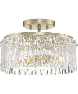 Add luxury and glamour to your home with the elegant Chevall Collection. The Semi-Flush Mount Light combines a layer of distinctive artisanal glass with a richly burnished, Gilded Silver frame. Glimmering illumination creates a sparkling ambiance that fills the room. This fixture is part of the Progress Lighting Design Series, a lighting collection offering fashionable styles and affordable luxury lighting for the home.