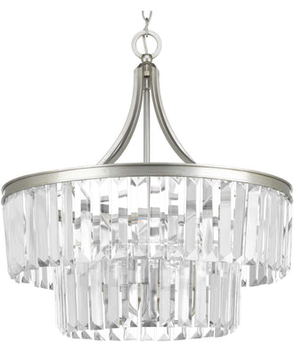 Transform your home with the Glimmer 5-Light Clear Glass Luxe Pendant Light in Silver Ridge. Its combination of prismatic glass, architectural design, and luxurious finish makes it a must-have for any stylish interior. Elevate your space with this stunning pendant light and enjoy the perfect blend of beauty and functionality.