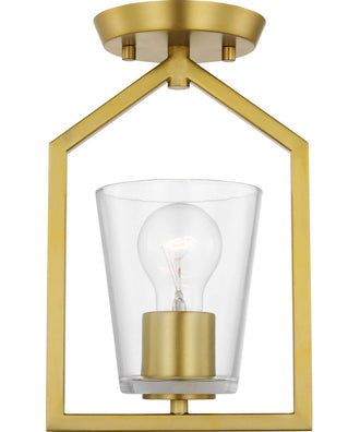 Vertex 1-Light Clear Glass Contemporary Semi-Flush Mount Brushed Gold