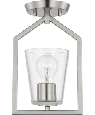 Vertex 1-Light Clear Glass Contemporary Semi-Flush Mount Brushed Nickel