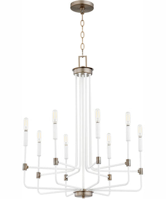 The Davies 8-light Chandelier in Studio White with Dark Brass finish is a stunning addition to any home or office. Its transitional style seamlessly blends modern and traditional elements, making it a versatile piece that complements various interior themes. The chandelier's sleek, clean lines and sophisticated design create a striking focal point, enhancing the ambiance of any room.