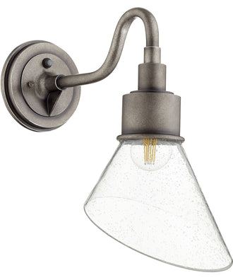 The 9" Torrey 1-light Wall Mount Light Fixture in Weathered Zinc with Clear Seeded finish is a stunning addition to any home or office. This exquisite light fixture effortlessly combines rustic charm with modern elegance, making it a versatile choice for various interior styles. The weathered zinc finish adds a touch of vintage appeal, while the clear seeded shade provides a contemporary twist. The combination of these elements creates a timeless piece that enhances the aesthetic of any space.