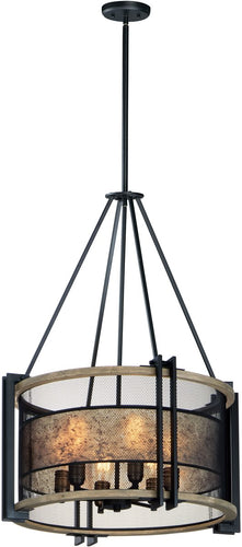 Maxim 24"W Boundry 6-Light Chandelier Black / Barn Wood / Antique Brass