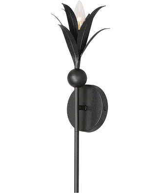 Effortlessly elegant, the biophilic details that adorn this classic chandelier transports you to an oasis indoors. The design, whether brilliantly gilt in Gold Leaf or hand painted in a dramatically textural Anthracite finish, exudes a timeless quality that is sure to please. The graceful form of these fixtures is constructed of slender metal tubes that sprout from a spherical collector at the center and Off-White metal candle covers that are designed to last.
