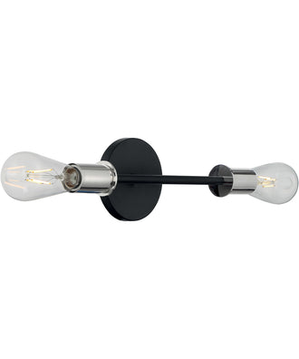 The 5"W Ryder 2-Light Vanity & Wall fixture by Nuvo Lighting is a perfect blend of modern elegance and industrial charm. Featuring a sleek black finish complemented by polished nickel sockets, this lighting fixture exudes sophistication and style. The minimalist design showcases two exposed bulbs that provide a contemporary aesthetic, making it an ideal addition to any modern or transitional space.