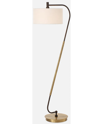 • Features: This arched floor lamp is crafted from steel and features a stunning plated antique brass paired with rustic dark bronze details.