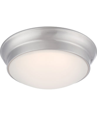 The 12"W Conrad 1-Light LED Close-to-Ceiling fixture by Nuvo Lighting is the epitome of modern elegance. Its sleek, brushed nickel finish exudes a sophisticated charm that seamlessly blends with contemporary interiors. The fixture's round shape and frosted glass material create a soft, inviting glow, enhancing the ambiance of any room. Measuring 12 inches in length and width, and standing at a height of 4.13 inches, this compact yet stylish light fixture is perfect for low ceilings, offering a clean and unobtrusive look.
