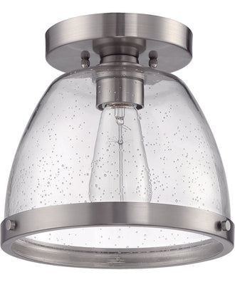 This flushmount light fixture is designed to provide excellent illumination without overwhelming your space. It measures 7 inches in height and 7.5 inches in width, making it ideal for smaller areas or as part of a layered lighting scheme. The clear seeded glass shade, with dimensions of 6.88 inches in width and 5.38 inches in height, allows for optimal light diffusion, creating a warm and inviting ambiance.