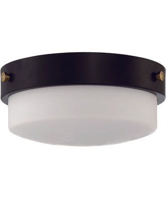 The Oak Street Collection by Craftmade, inspired by strength of classic turn of the century lighting, features a striking combination of sleek metal and white frosted glass in your choice of brushed polished nickel or flat black. The flat black finish includes brushed polished nickel, flat blak and satin brass knobs to customize your look. The Oak Street Two Light Flushmount Collection is available in 11" and 13" diameter and each uses two 60W medium base bulbs.