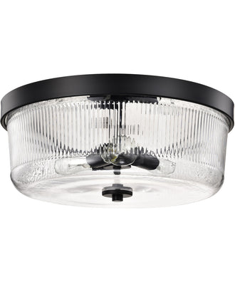 Rustic charm meets contemporary style in the Grayson 60-8609 three light large flush mount, designed to bring industrial farmhouse elegance to today's interiors. Ideal for creating inviting spaces with character, the clean lines and textured details capture the essence of enduring design. With its bold matte black finish and clear ribbed glass, it delivers a perfect blend of warmth and modern sophistication. Grayson offers that perfect touch of Industrial Farmhouse for modern living.