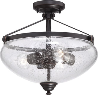 A semi-flush may need a little more ceiling height than a flush mount, but is often useful in a living or family room, bedrooms, a kitchen, a home office or in a basement. They also work well in hallways, bathrooms and smaller rooms.