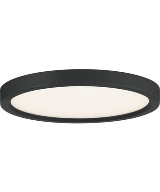 Available in four finishes and four sizes, the Outskirts flush mount is suited for a variety of room applications. In your choice of Earth Black, Brushed Nickel, White or Oil-rubbed Bronze, it is featured in sizes of 7.5”, 11”, 15”, or 20". The white acrylic shade is illuminated with integrated LED technology and the thick canopy adds depth to the simple structure.